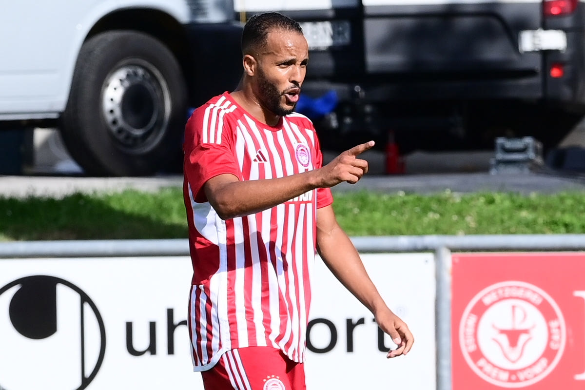 Ο Γιουσέφ Ελ Αραμπί πανηγυρίζει γκολ με τη φανέλα του Ολυμπιακού απέναντι στην Σλοβάτσκο | 8 Ιουλίου 2023 Eurokinissi Sports