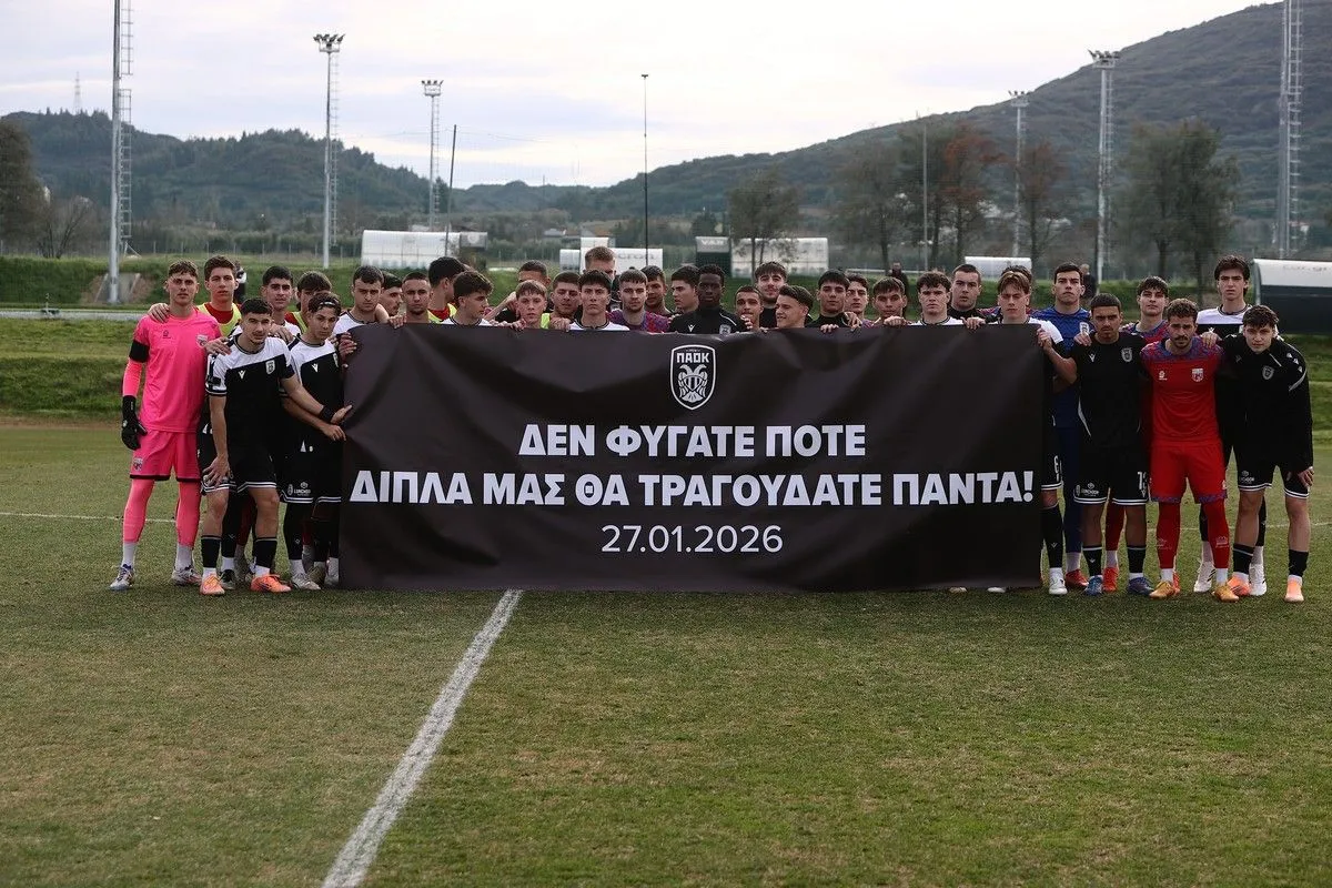Ανατριχίλα επικράτησε στη Σουρωτή στο πλαίσιο του αγώνα της Κ19 του ΠΑΟΚ με τον Βόλο για το πρωτάθλημα που διεξήχθη κανονικά παρά το τροχαίο δυστύχημα στη Ρουμανία που στοίχισε τη ζωή σε επτά οπαδούς του Δικεφάλου.