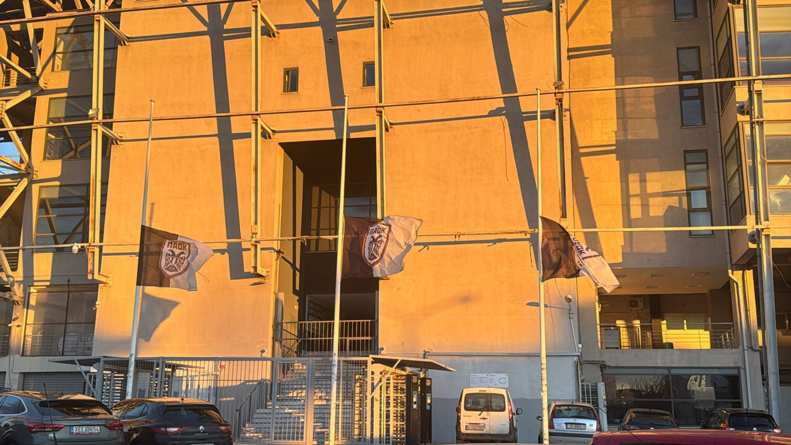 Σε ένδειξη πένθους για τον αδόκητο χαμό των επτά παιδιών του Δικεφάλου, οι σημαίες στην Τούμπα κυματίζουν μεσίστιες.