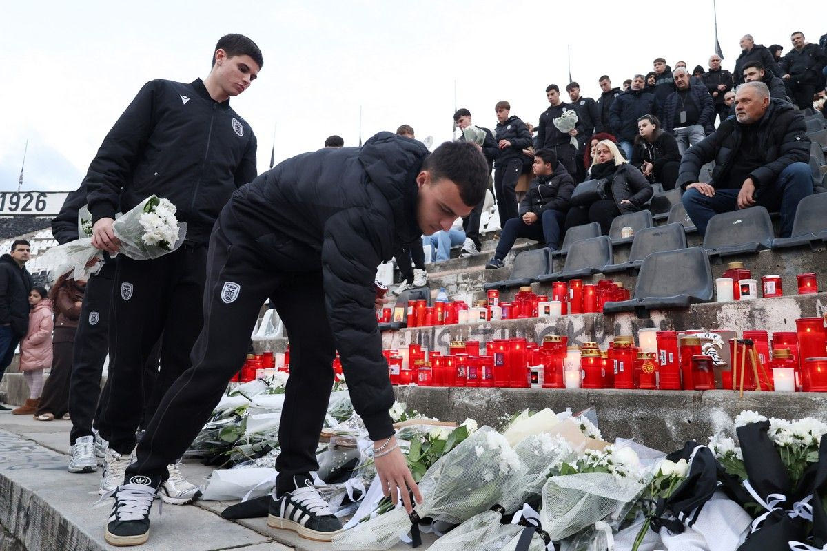 Οι νεαροί ποδοσφαιριστές του Βόλου άφησαν από ένα λουλούδι στις εξεδρες του γηπέδου της Τούμπας τιμώντας με αυτό τον τρόπο την μνήμη των αδικοχαμένων οπαδών του ΠΑΟΚ.