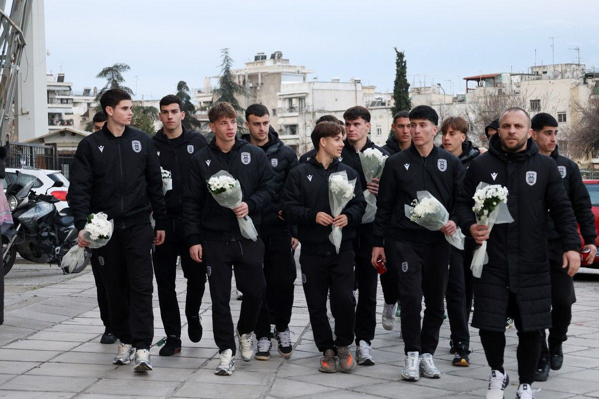 Μετά τον αγώνα ΠΑΟΚ – Βόλος για το πρωτάθλημα της Stoiximan Super League Κ19, οι δύο ομάδες πήγαν στην Τούμπα για να αφήσουν λουλούδια στη μνήμη των θυμάτων που έχασαν τη ζωή τους στο αυτοκινητιστικό δυστύχημα στη Ρουμανία.