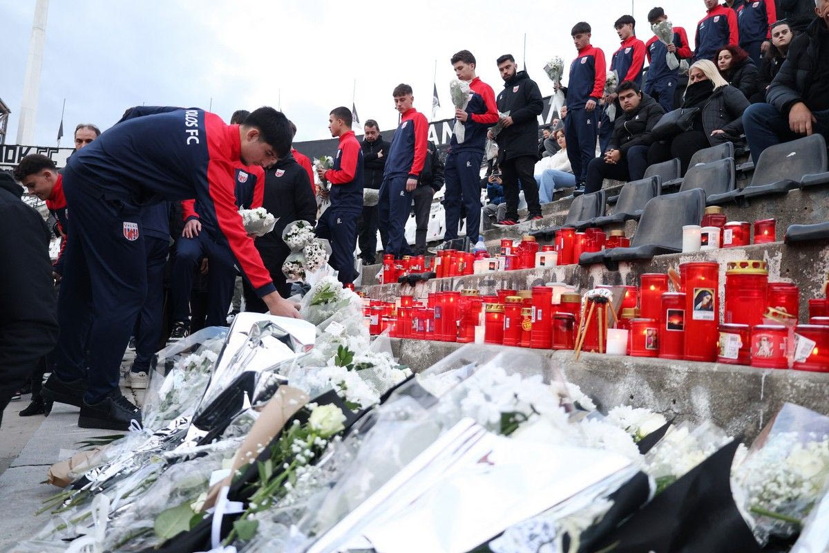 Φωτογραφίες από τα λουλούδια που άφησαν οι ομάδες Κ19 ΠΑΟΚ και Βόλου στην Τούμπα: