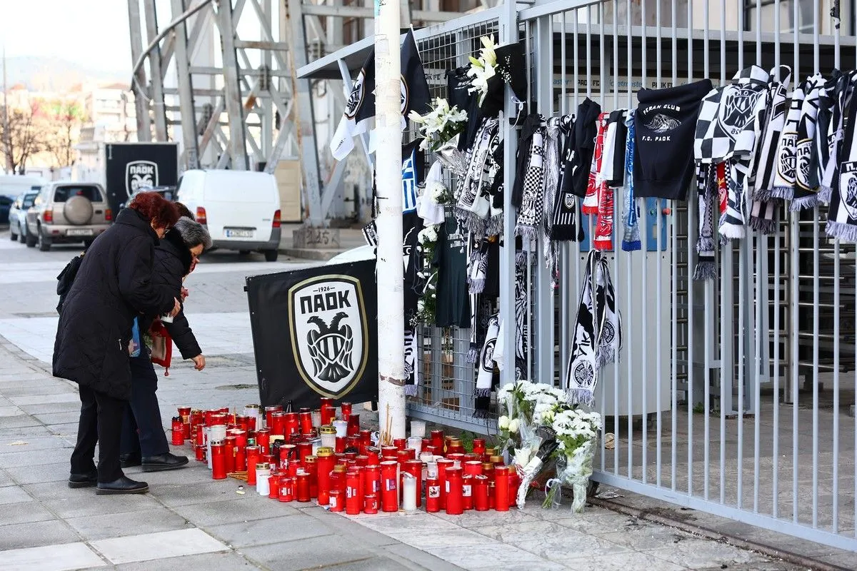 Στο γήπεδο του Δικεφάλου κατέφτασαν εκατοντάδες φίλοι του συλλόγου για να αφήσουν, λουλούδια, κεράκια και κασκόλ, ως ελάχιστη ένδειξη σεβασμού και μνήμης στα θύματα της τραγωδίας.