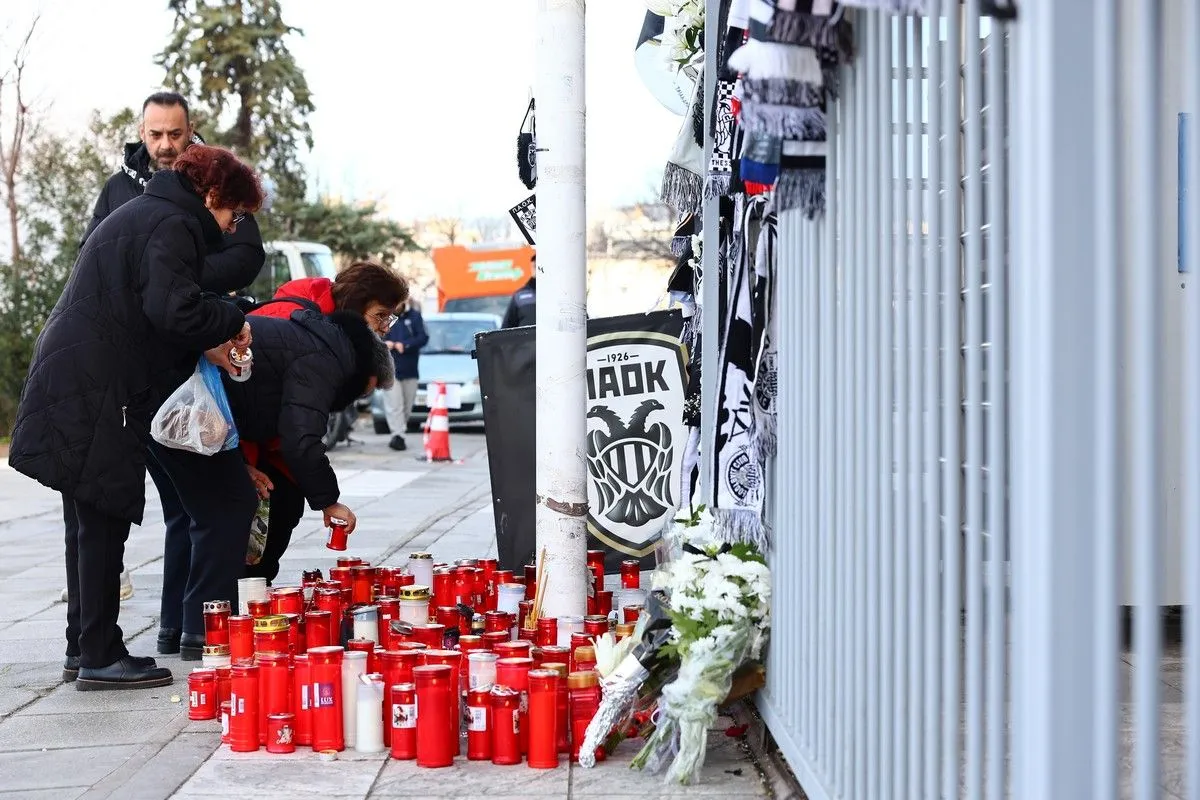 Στο γήπεδο του Δικεφάλου κατέφτασαν εκατοντάδες φίλοι του συλλόγου για να αφήσουν, λουλούδια, κεράκια και κασκόλ, ως ελάχιστη ένδειξη σεβασμού και μνήμης στα θύματα της τραγωδίας.