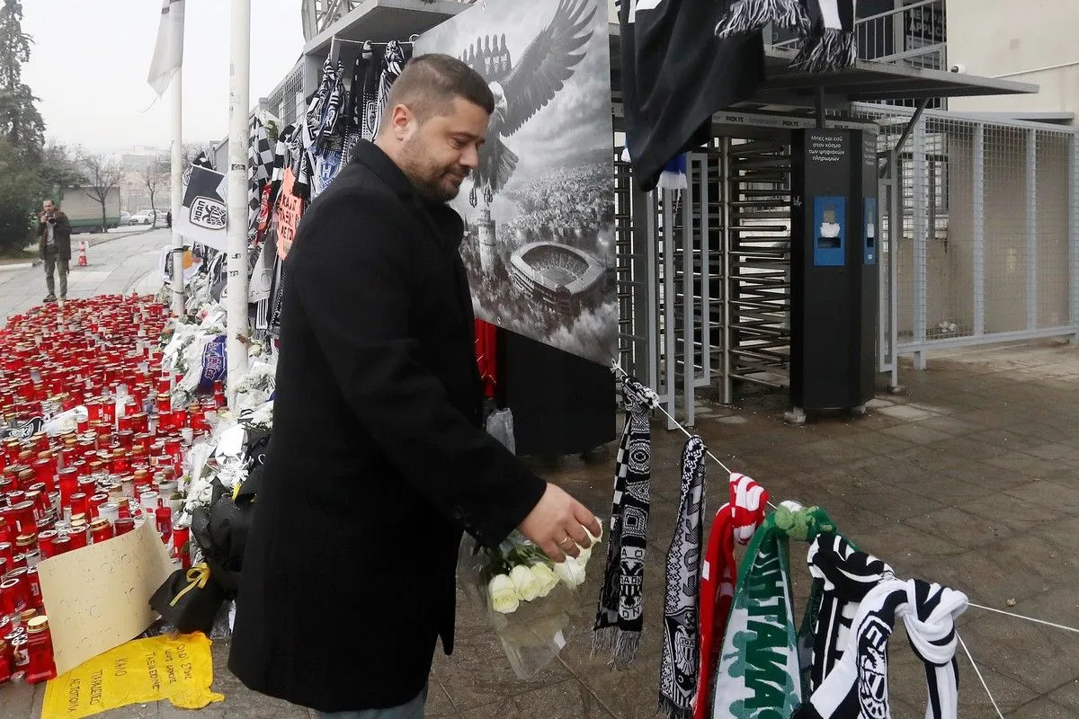 Στην Τούμπα βρέθηκε και ο πρόεδρος της ΕΠΟ, Μάκης Γκαγκάτσης, ο οποίος τίμησε τη μνήμη των θυμάτων και δεν συγκράτησε τα δάκρυά του για την ανείπωτη τραγωδία.