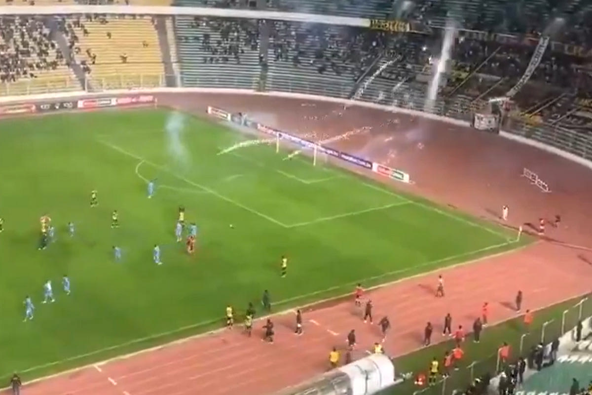 Μετά το γκολ του Χουάν Γκοντόι που έδωσε το προβάδισμα στη The Strongest, οι φίλαθλοι άρχισαν να εκτοξεύουν φωτοβολίδες στον αγωνιστικό χώρο.