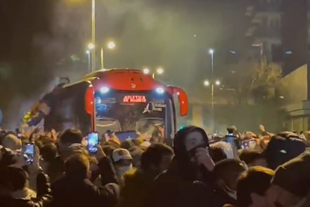 Και αυτό γιατί κατά την άφιξή τους στο “Ανοέτα” τα δύο πούλμαν που μετέφεραν την αποστολή της Ατλέτικο, το ένα με τους παίκτες και το άλλο με το προπονητικό επιπτελείο, δέχτηκαν επίθεση από φίλους των γηπεδούχων που είχαν περικυκλώσει το χώρο.