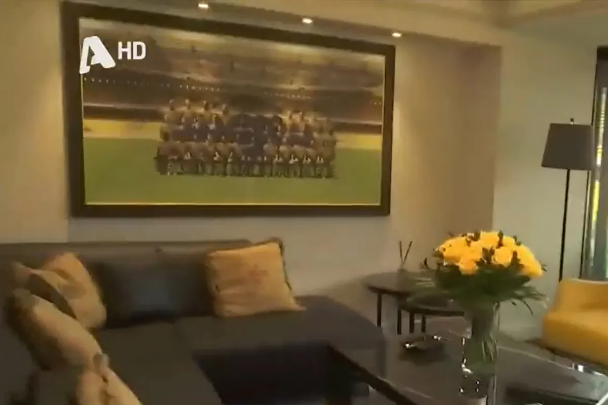 Η εκπομπή “Σαββατοκύριακο με τον Μάνεση” βρέθηκε στο νέο γήπεδο της Ένωσης και μας ξενάγησε στην εκθαμβωτική σουίτα, η οποία έχει έντονο κιτρινόμαυρο χρώμα, διαθέτει ένα μικρό σαλόνι με καναπέδες και πολυθρόνες, ένα τραπέζι για μίνι-συσκέψεις και μία τεράστια τηλεόραση.