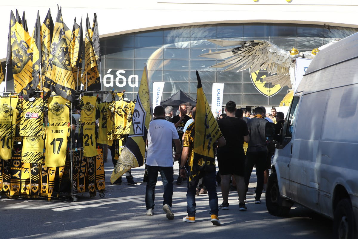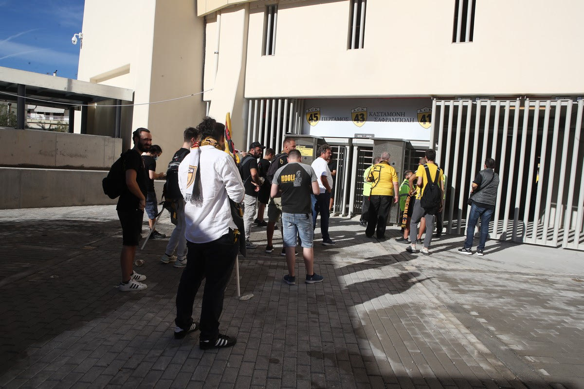 Λίγο μετά τις 5.00μ.μ. άνοιξαν οι θύρες της OPAP Arena με τον κόσμο της ΑΕΚ να μπαίνει στο γήπεδο και να παίρνει τις θέσεις του στο νέο σπίτι της Ένωσης.