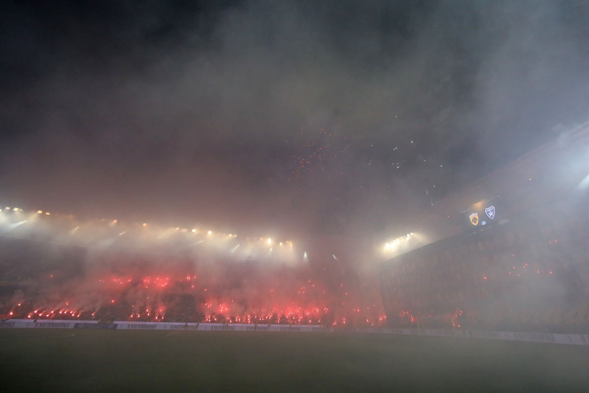 OPAP Arena: Απίστευτες εικόνες με πυροτεχνήματα, βεγγαλικά και καπνογόνα από 32.000 οπαδούς της ΑΕΚ