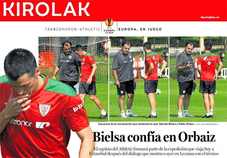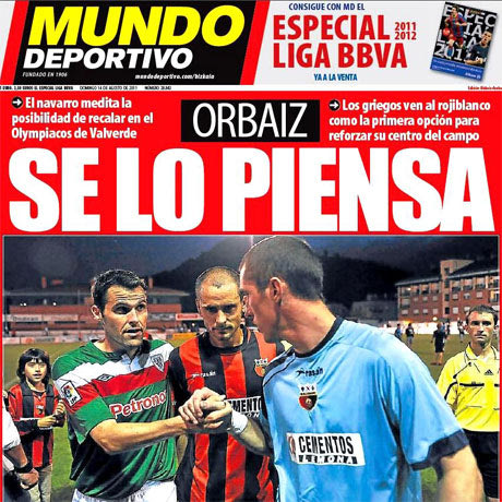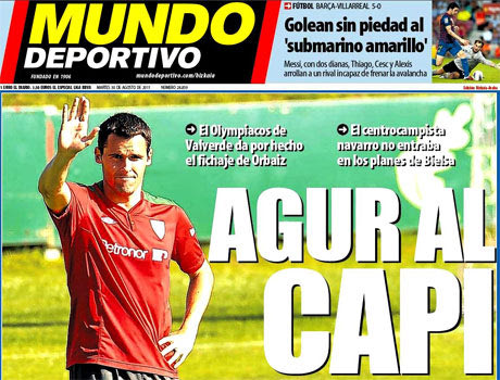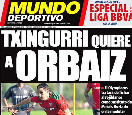 Στο σημερινό της πρωτοσέλιδο, η Mundo Deportivo, γνωρίζοντας πλέον ότι απέμεναν μόνο οι επίσημες ανακοινώσεις, «αποχαιρέτησε» τον Ορμπάιθ με τον κεντρικό τίτλο «Agur al Capi» (σ.σ. agur στα βασκικά είναι το αντίο), δηλαδή «αντίο στον αρχηγό». Στα δυο χτυπήματα της πρώτης σελίδας διαβάζουμε: «ο Ολυμπιακός θεωρεί δεδομένη την απόκτηση του Ορμπάιθ» και «ο χαφ από τη Ναβάρα δεν βρισκόταν στα πλάνα του Μπιέλσα».