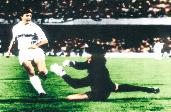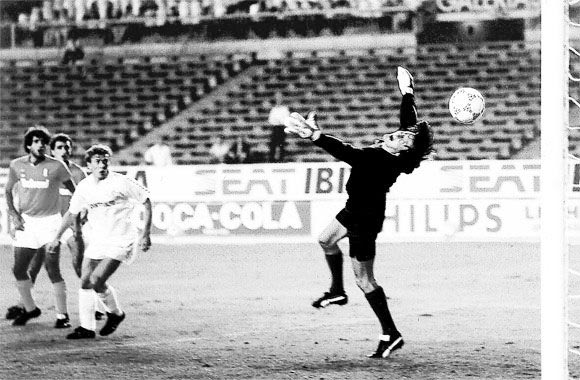 Ο Μπουίτρε παραβιάζει την εστία του Γκαρέλα, ισοφαρίζει 1-1 και ουσιαστικά τελειώνει την υπόθεση πρόκριση για τη Ρεάλ (30/9/1987)
