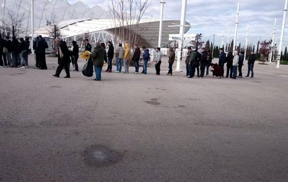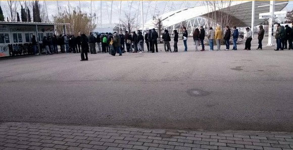 Τα εκδοτήρια του Ολυμπιακού Σταδίου θα ανοίξουν στις 10 το πρωί, ωστόσο 2 ώρες πριν η ουρά έχει ήδη σχηματιστεί και οι Ενωσίτες περιμένουν υπομονετικά για να μπορέσουν να αγοράσουν ένα από τα τελευταία εισιτήρια.