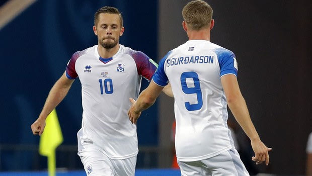 Ο Γκίλφι Σίγκουρντσον με τη φανέλα της εθνικής Ισλανδίας από τον αγώνα με την Κροατία στο Μουντιάλ 2018