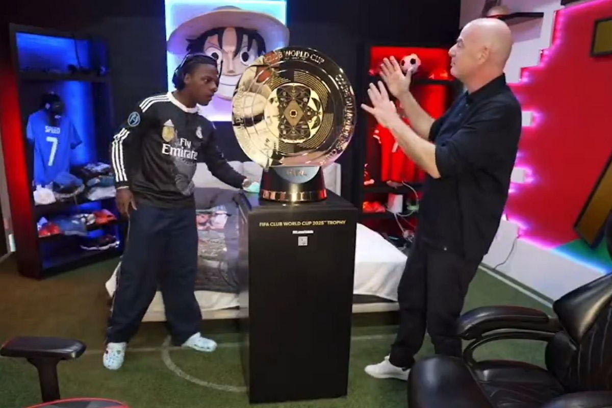 Παγκόσμιο Κύπελλο Συλλόγων: Ο Ινφαντίνο έκανε τα αποκαλυπτήρια του νέου τροπαίου σε live streaming του IshowSpeed