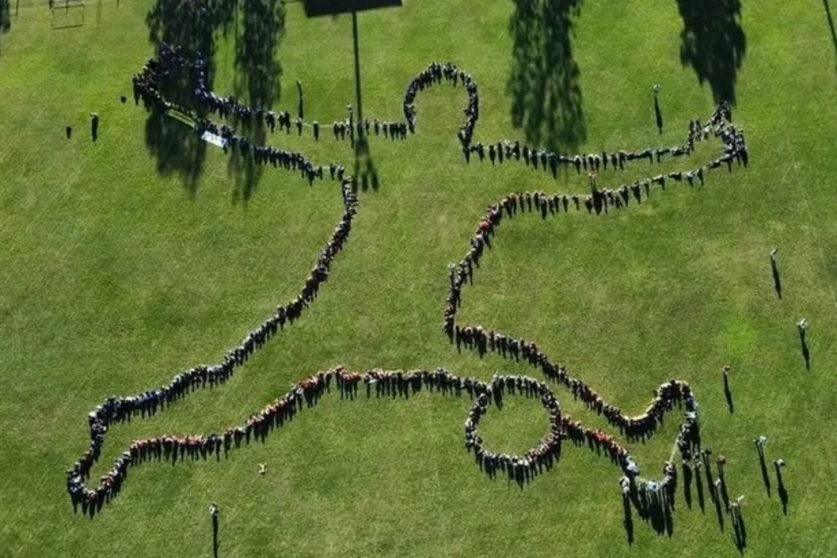 Παιδιά στη Ρίο Τερσέρο της Αργεντινής πιάστηκαν χέρι-χέρι και δημιουργώντας μία ανθρώπινη αλυσίδα σχημάτισαν την εμβληματική απόκρουση του Εμιλιάνο Μαρτίνες που βοήθησε την Αργεντινή να κατακτήσει το Παγκόσμιο Κύπελλο του 2022.