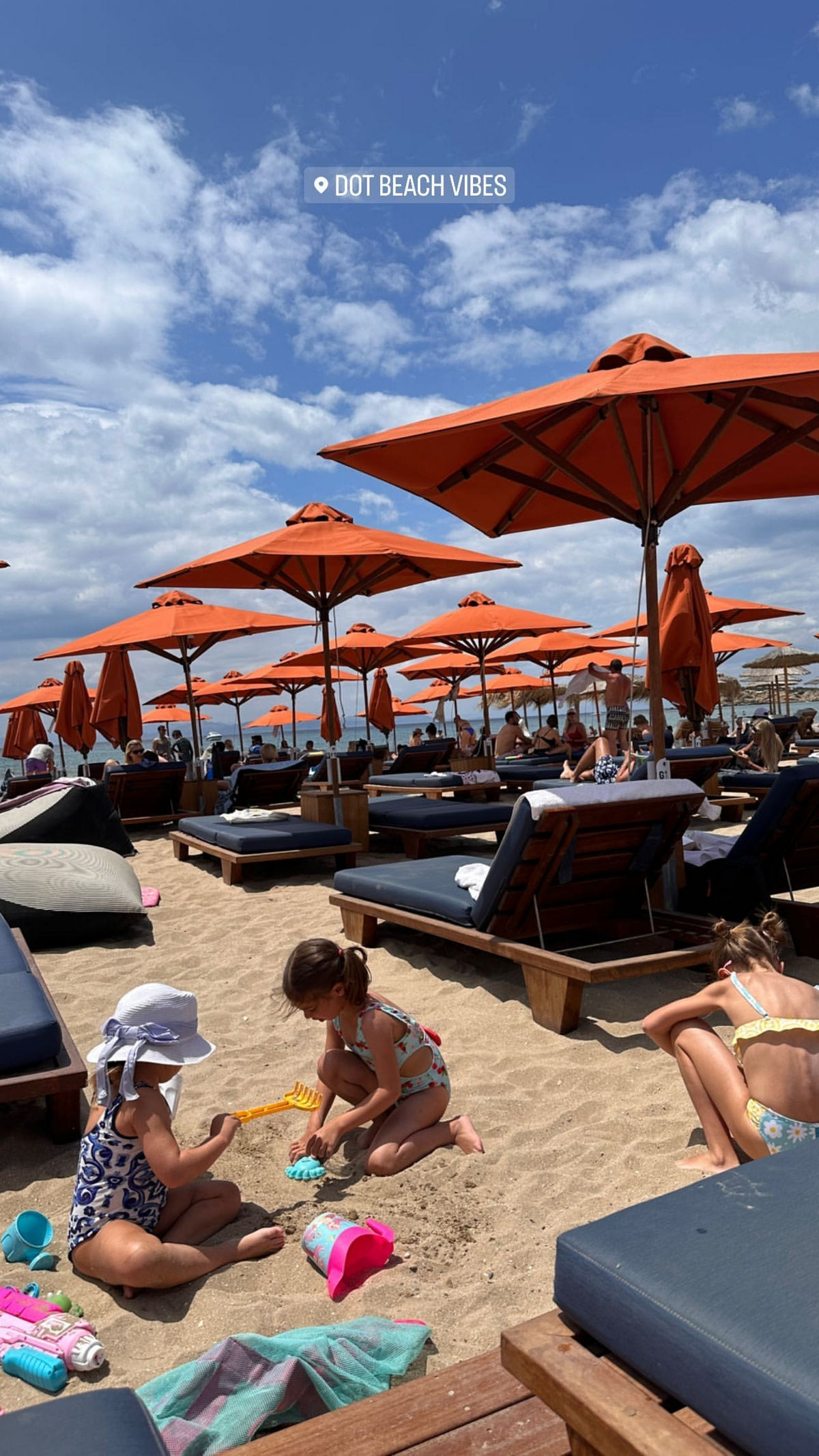 Παράλληλα, δεν σταματάει να γυμνάζεται ακόμη και στην άμμο έχοντας πάντα μαζί της την μικρή κόρη της οικογένειας.