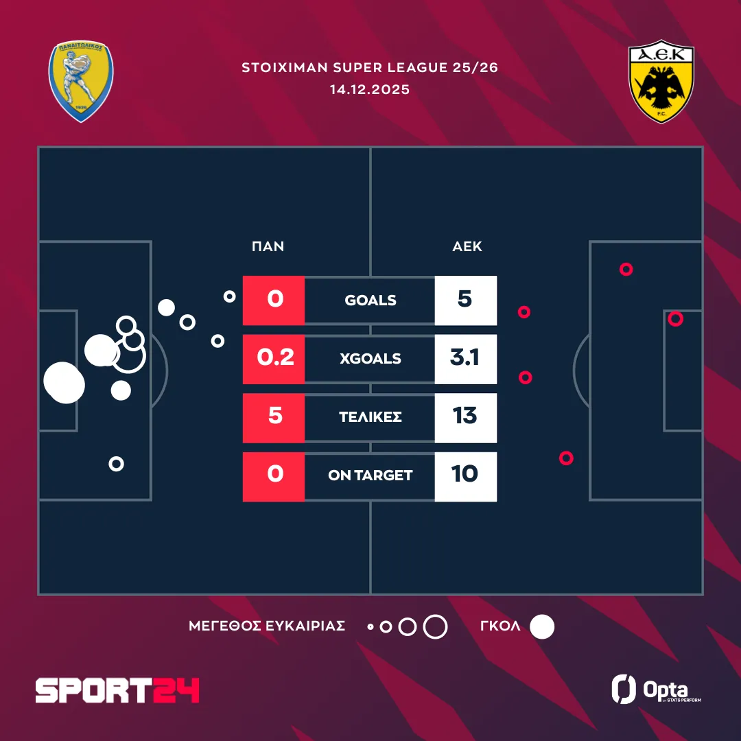 Η ΑΕΚ με αυτό το τρίποντο ανέβηκε στους 34 και έπιασε προσωρινά τον Ολυμπιακό στον βαθμολογικό πίνακα, ενώ ο Παναιτωλικός είναι στην ένατη θέση με 15 βαθμούς. Στο τελευταίο ματς του 2025 η Ένωση φιλοξενεί τον ΟΦΗ στην OPAP Arena, ενώ ο Παναιτωλικός την επόμενη αγωνιστική αντιμετωπίζει τον Βόλο στο Πανθεσσαλικό.