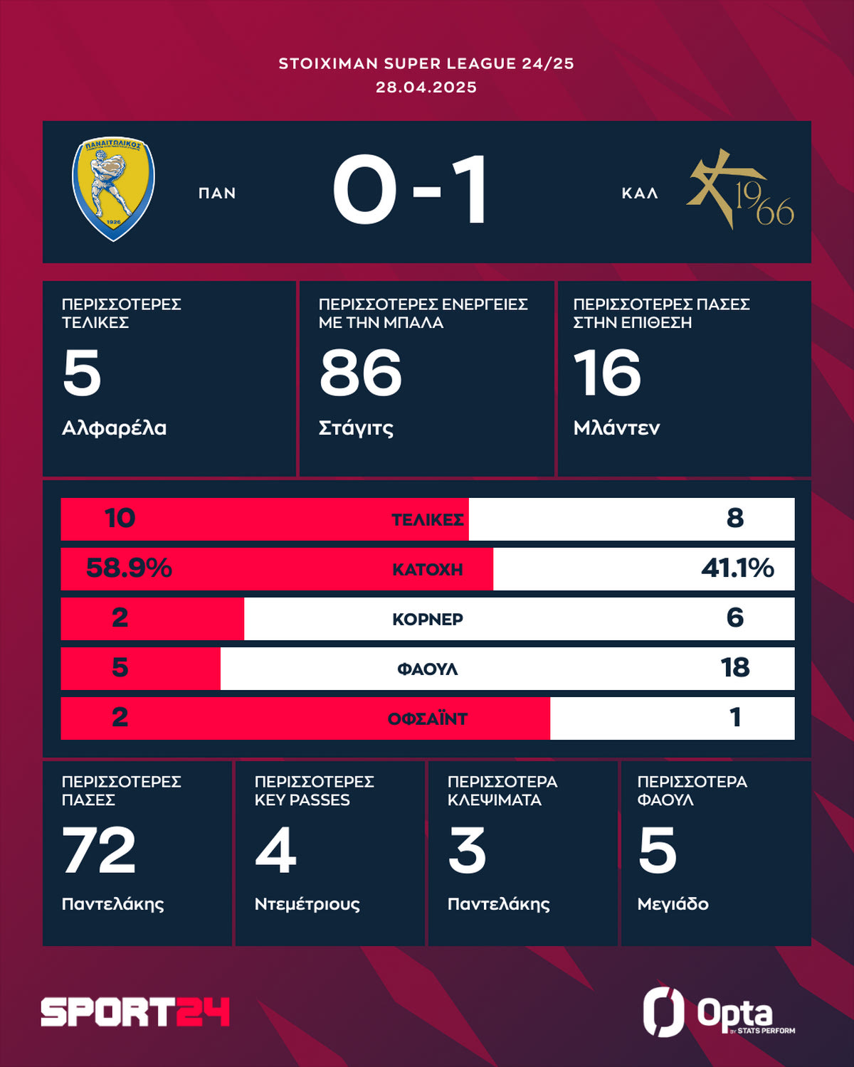 ATHENS KALLITHEA: Γκέλιος, Σοΐρι, Πασαλίδης (62′ Μεχίας), Τσιβελεκίδης, Καινούργιος, Ισιμά-Μιρέν, Μεγιάδο, Μερκάτι (62′ Μεταξάς), Λεμπόν (75′ Βαλμπουενά), Ντεμέτριους (87′ Ματίγια), Αλφαρέλα (87′ Αλφαρέλα)