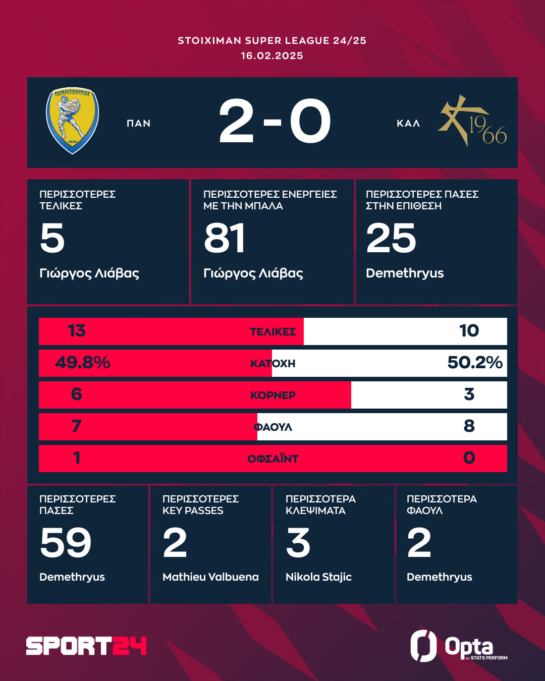 Ο Παναιτωλικός πήρε τεράστια νίκη και εδραιώνεται στα playoffs 5-8. Η ομάδα του Γιάννη Πετράκη επικράτησε 2-0 της Athens Kallithea χάρη στο γκολ που πέτυχε ο Ανδρέας Τεττέι στο 85ο λεπτό, ο οποίος αποδείχθηκε χρυσή αλλαγή για τον Ρεθυμνιώτη τεχνικό.
