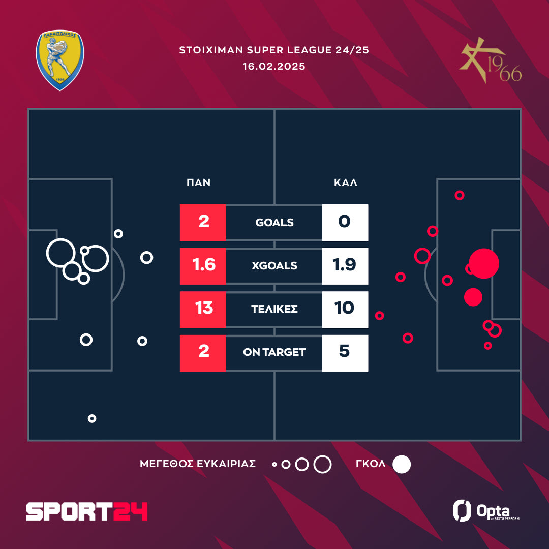 Μετά το 60′ ο Παναιτωλικός πήρε μέτρα στον αγωνιστικό χώρο στην προσπάθειά του να πάρει κάτι από το ματς. Οι παίκτες του Γιάννη Πετράκη προσπάθησαν να απειλήσουν και έφτασαν κοντά κυρίως με τον Λιάβα.