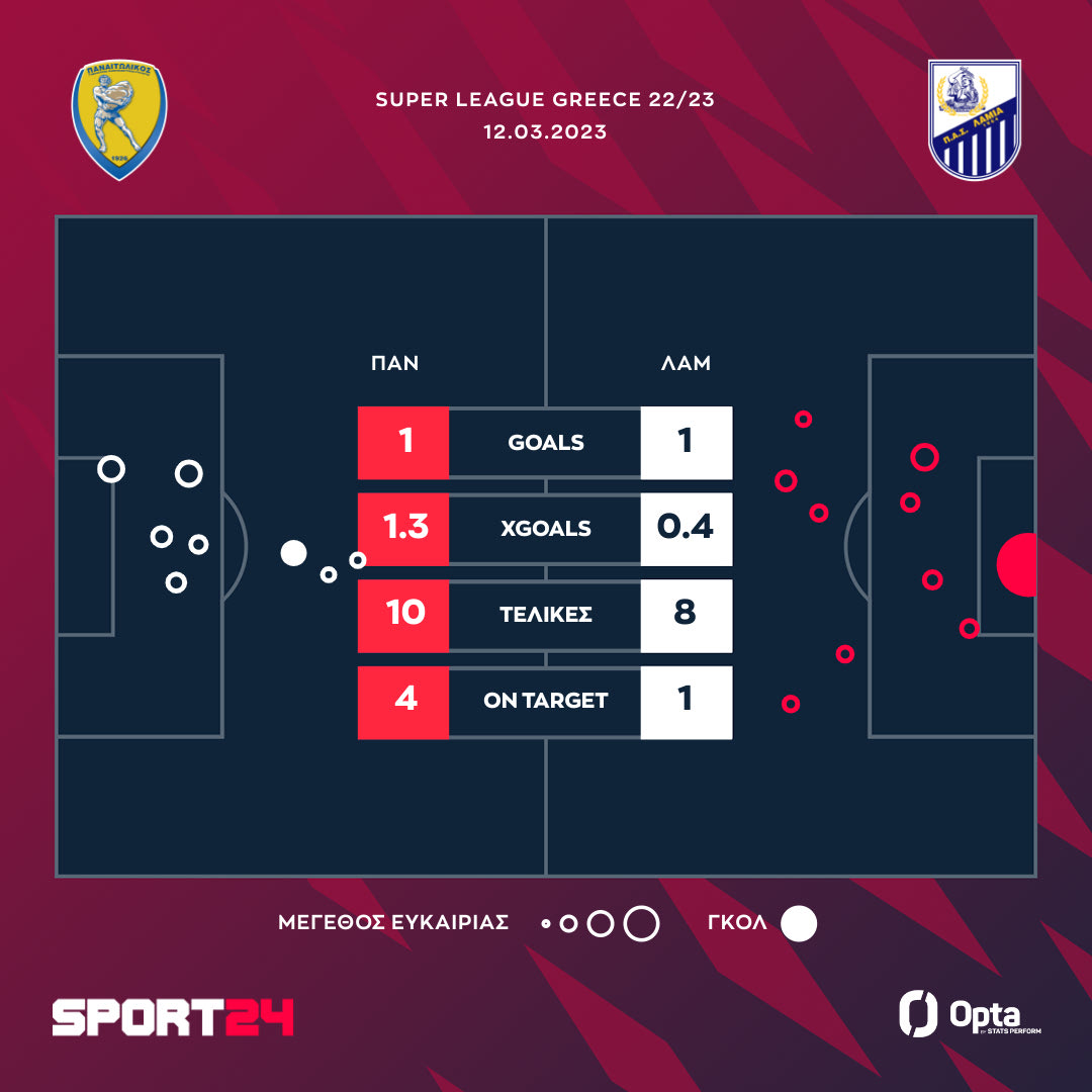 Με κατοχή άνω του 60% και πιο ουσιώδεις ευκαιρίες, οι γηπεδούχοι είχαν το πάνω χέρι, αλλά χρειάστηκαν ένα τραγικό λάθος του Γκαραβέλη για να προηγηθούν στο σκορ. Ο τερματοφύλακας της Λαμίας έχασε την μπάλα μέσα από τα χέρια του σε σέντρα στο 51′ και ο Νίκος Καρέλης την έσπρωξε στα δίχτυα.
