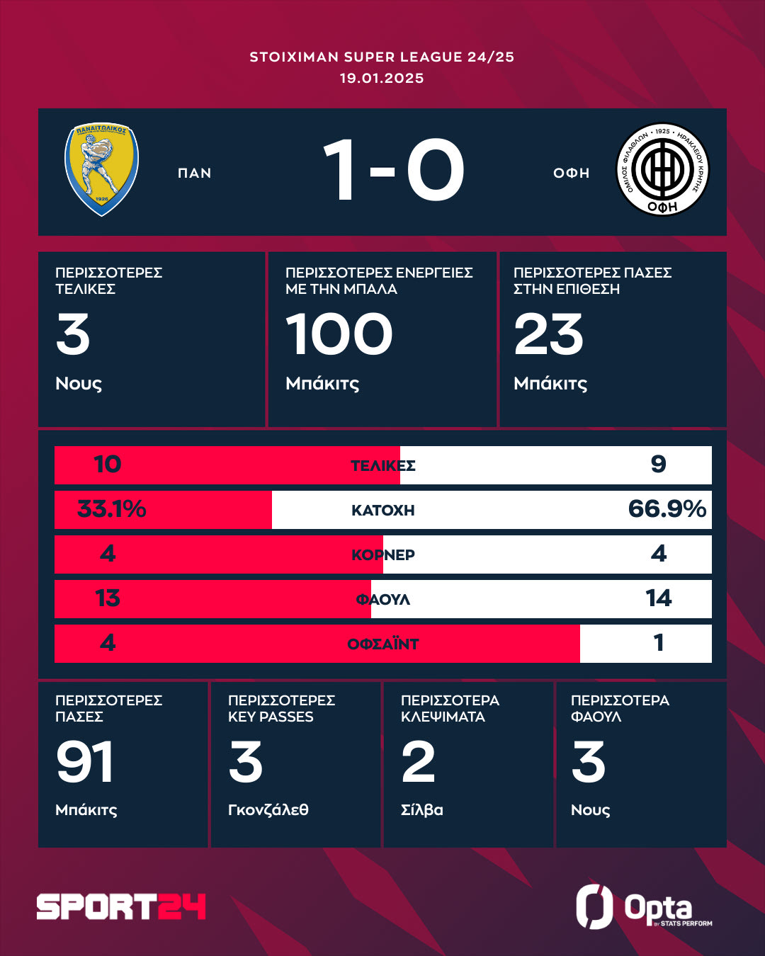 Τα στατιστικά και οι κορυφαίες επιδόσεις στο Παναιτωλικός - ΟΦΗ
