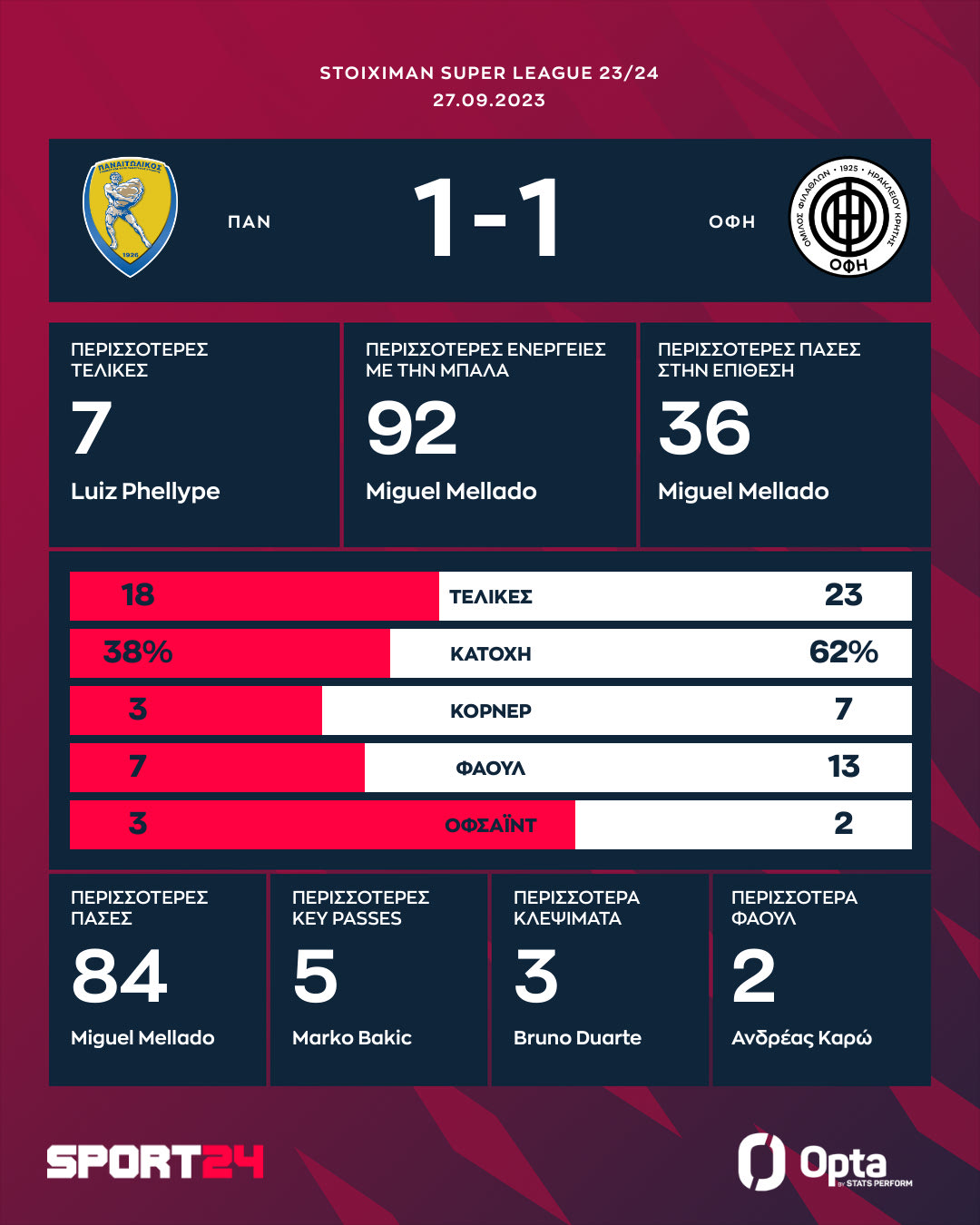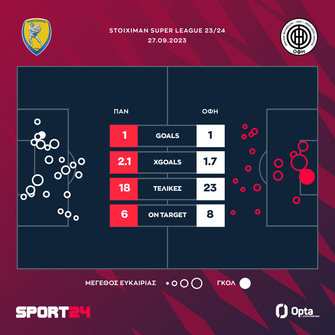 Ο ΟΦΗ έφτασε τους εννέα βαθμούς, έχοντας πάρει την τρίτη συνεχόμενη ισοπαλία του. Χωρίς νίκη παραμένει ο Παναιτωλικός, ο οποίος έχει συγκεντρώσει τρεις πόντους.