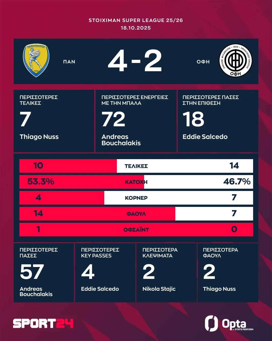 Σε ένα απίθανο παιχνίδι, ο Παναιτωλικός κατάφερε να πάρει την πρώτη του φετινή νίκη στο Αγρίνιο, καθώς νίκησε 4-2 τον ΟΦΗ με ανατροπή στο πλαίσιο της 7ης αγωνιστικής της Stoiximan Super League.