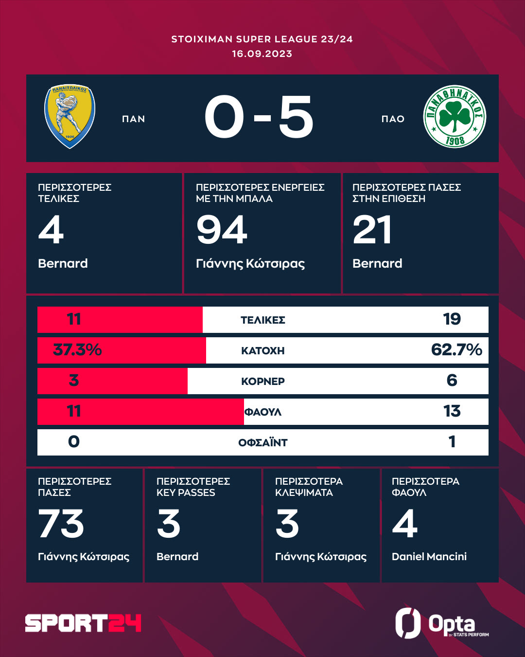 Στις καθυστερήσεις οι πράσινοι πέτυχαν ένα ακόμα γκολ με κεφαλιά του Μάγκνουσον, έπειτα από εκτέλεση κόρνερ του Τσέριν. Ο Παναθηναϊκός έτσι έφτασε τους εννιά βαθμούς στο πρωτάθλημα, ενώ ο Παναιτωλικός παραμένει χαμηλά με δύο βαθμούς.