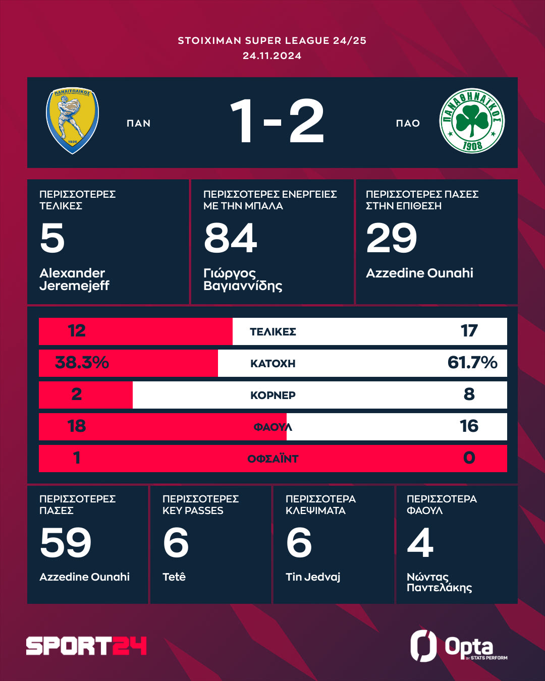 Ο Παναθηναϊκός ανέβηκε στους 22 βαθμούς, ενώ ο Παναιτωλικός έμεινε στην έκτη θέση με 18 βαθμούς.