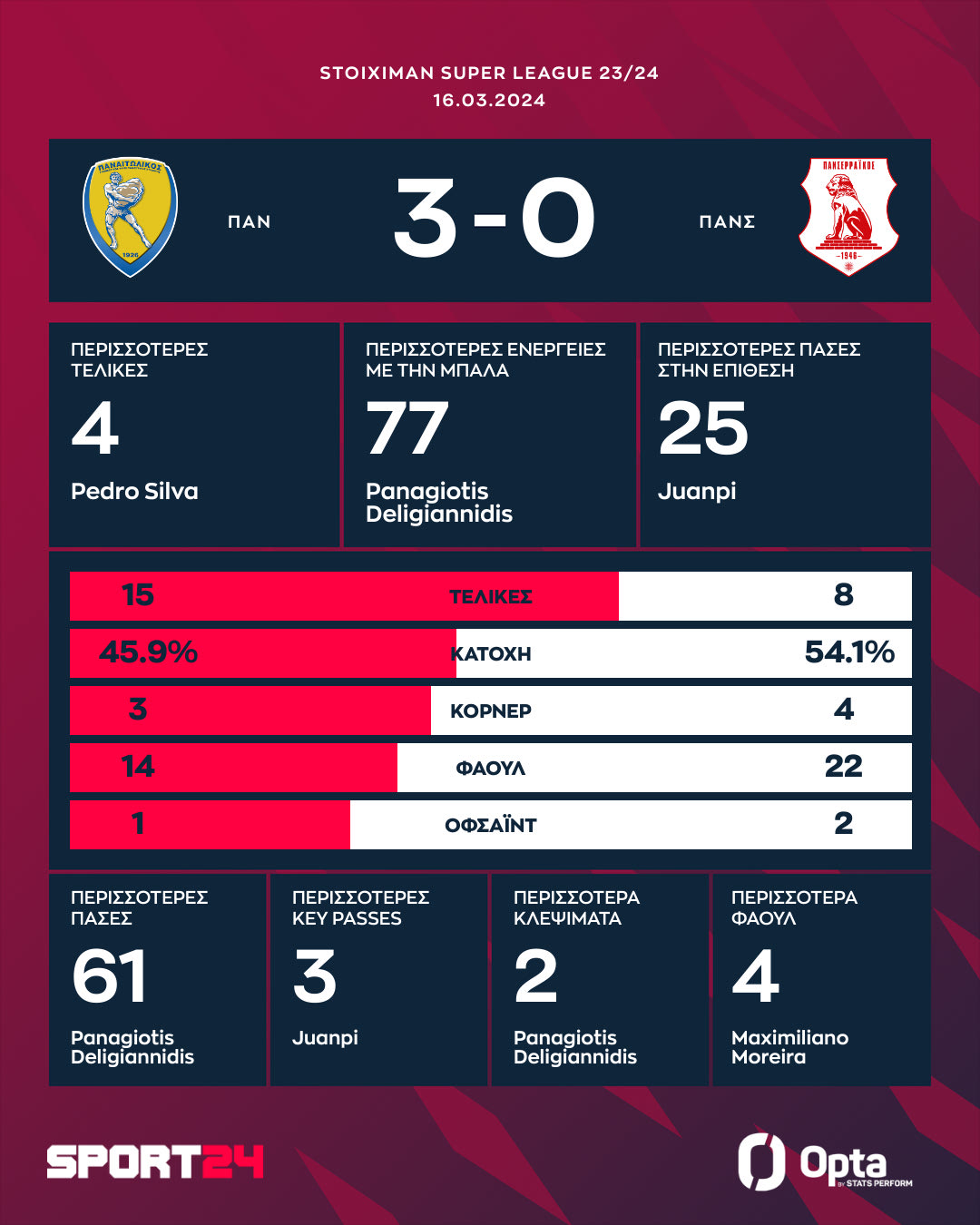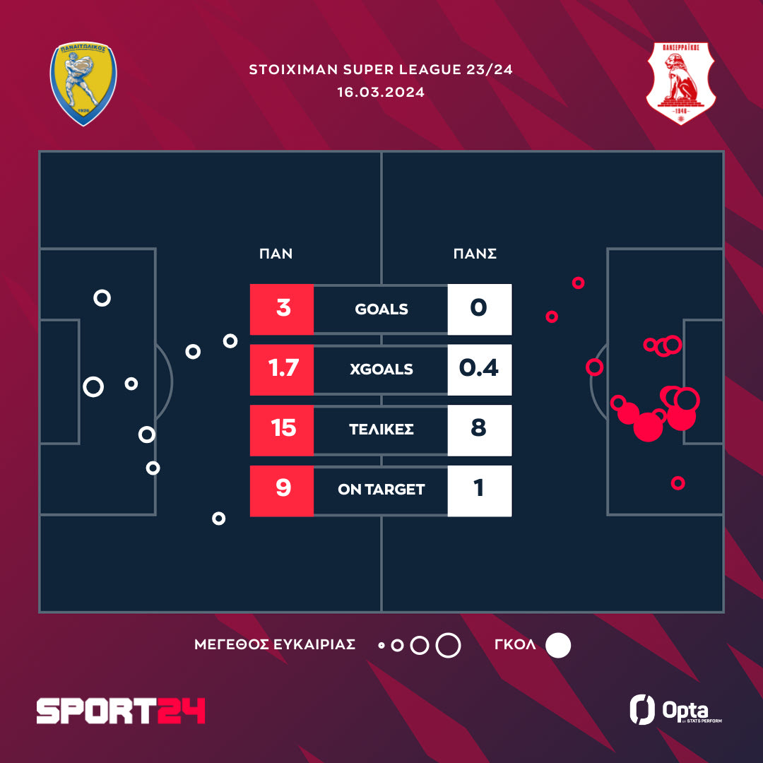 Αντιθέτως, ο Παναιτωλικός φρόντισε να κλείσει το ματς με ακόμη ένα γκολ. Ο Λιάβας από τα δεξιά έκανε το γέμισμα στην περιοχή, ο Λομόνακο σούταρε στην κίνηση και έστειλε την μπάλα στα δίχτυα για το 3-0 στο 90+3′.