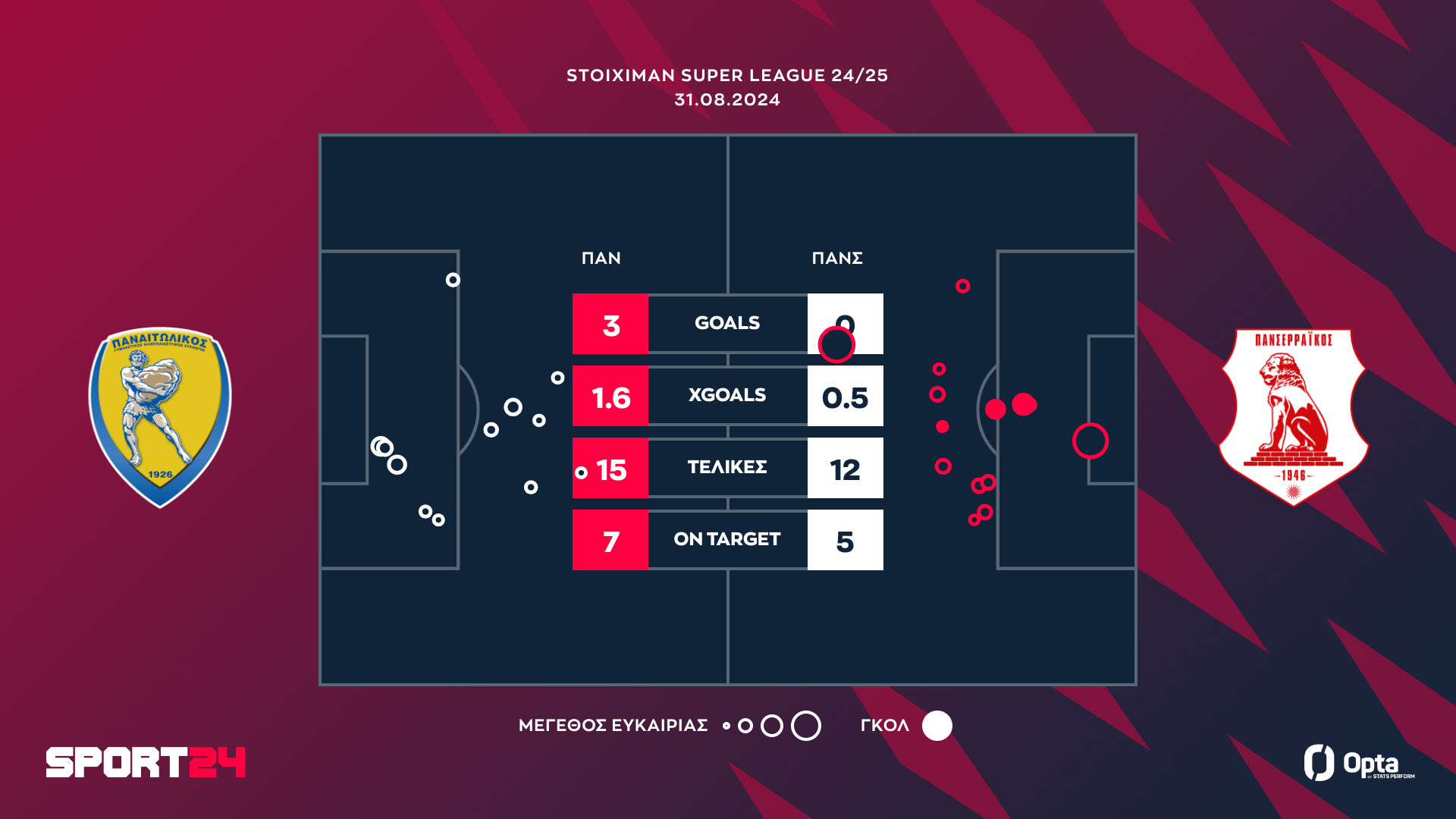 Ο Παναιτωλικός κέρδισε με 3-0 τον Πανσερραϊκό στις Σέρρες, πήρε τους πρώτους τους βαθμούς στο πρωτάθλημα και άφησε στην τελευταία θέση χωρίς πόντους την ομάδα των Σερρών.