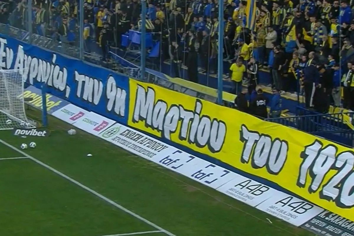 Παναιτωλικός: Το γιγαντιαίο πανό των οργανωμένων οπαδών του Τιτόρμου για τα 100 χρόνια του συλλόγου