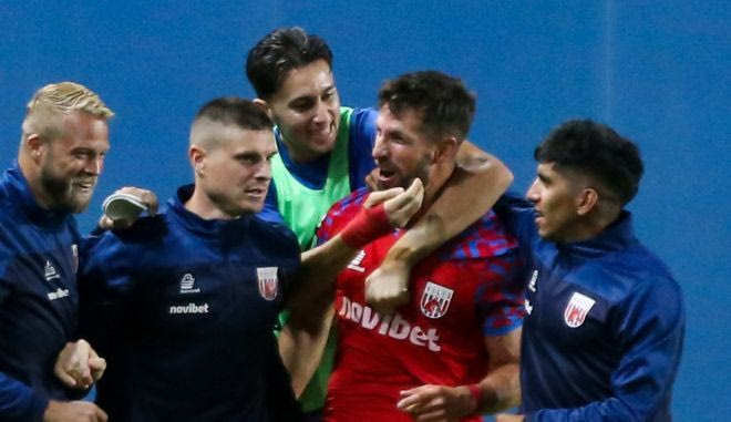 Το σύνολο του Γιάννη Πετράκη αγωνίζονταν με 10 παίκτες από το 26′ μετά από αποβολή, δεύτερη κίτρινη κάρτα, του Νίκολα Στάγιτς.