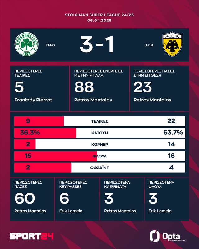 Έτσι ο Παναθηναϊκός επέστρεψε στις νίκες και έβαλε “φωτιά” στη μάχη για τη δεύτερη θέση, “πιάνοντας” την ΑΕΚ στους 53 βαθμούς, με τον ΠΑΟΚ να βρίσκεται στους 52.