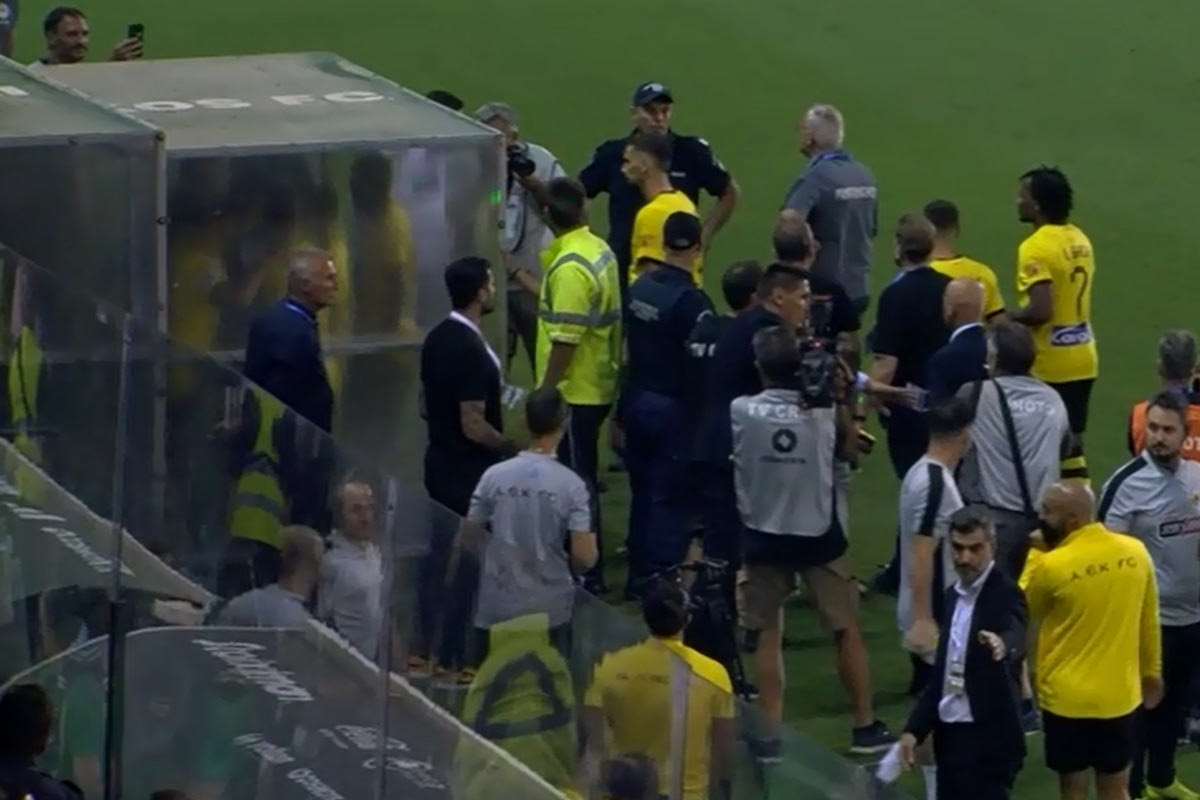 Οι άνθρωποι της Ένωσης είχαν ενημερώσει τους γηπεδούχους, τον επικεφαλής της αστυνομικής δύναμης, όπως και τον εισαγγελέα για την απόφασή τους. Από την ΑΕΚ θεωρούν το πανό προκλητικό, προσβλητικό και χυδαίο.