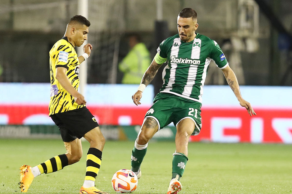 Κουρμπέλης και Πινέδα μάχονται για την μπάλα στο Παναθηναϊκός - ΑΕΚ