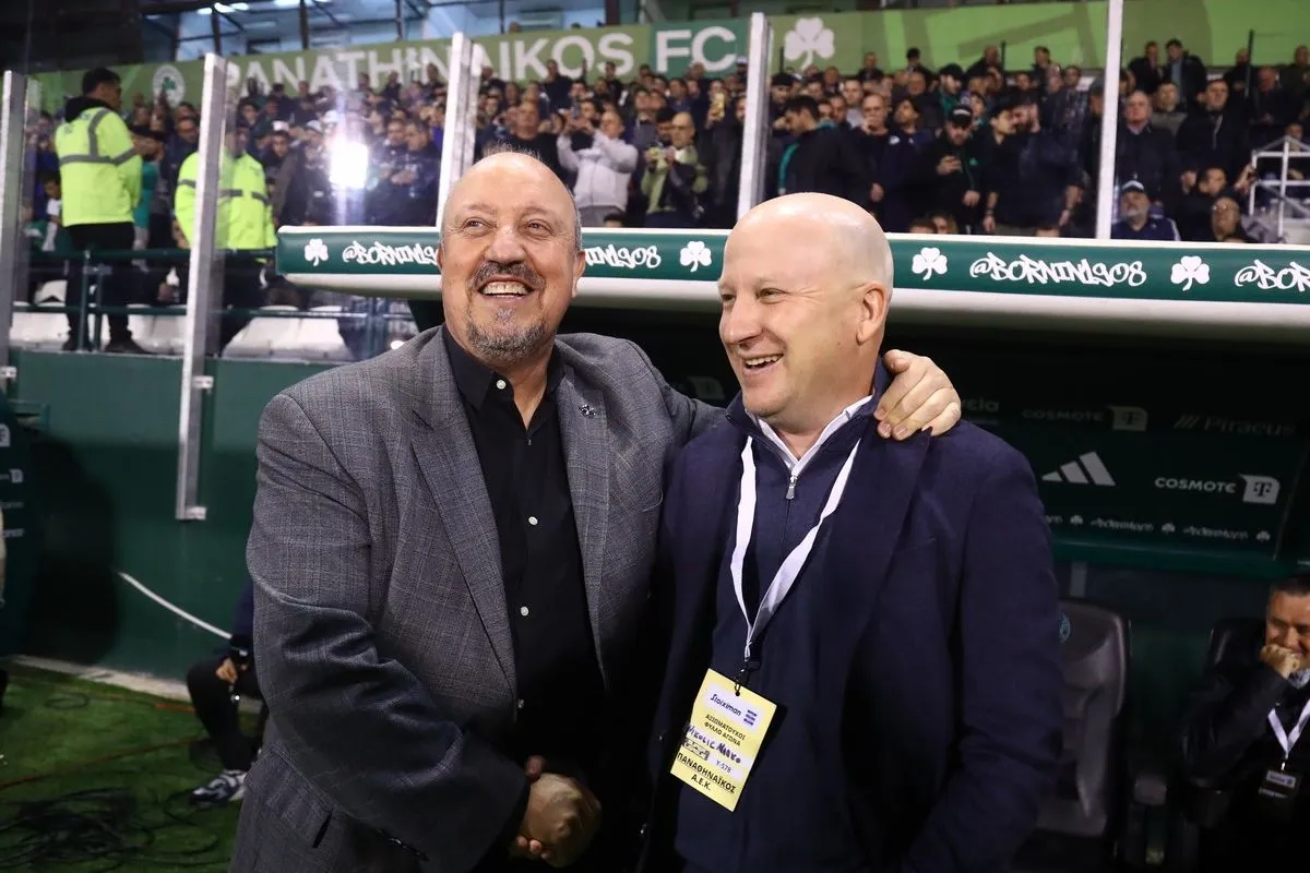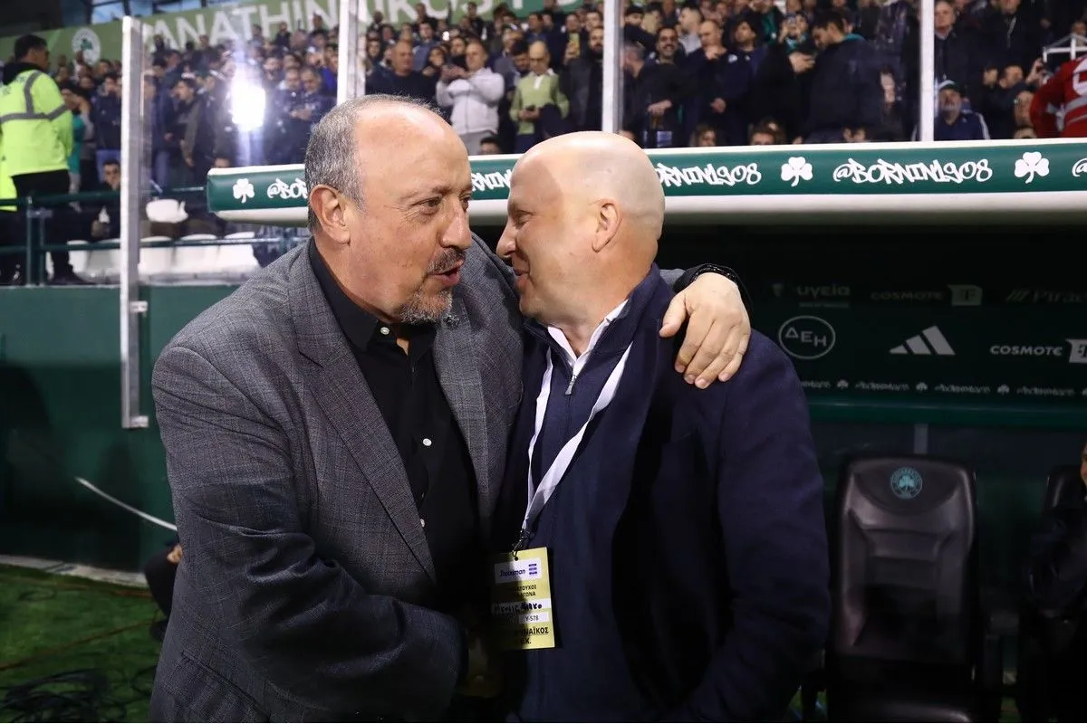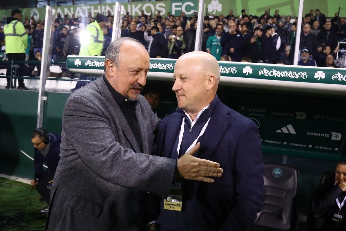 Λίγο πριν από την έναρξη της αναμέτρησης Παναθηναϊκός – ΑΕΚ, οι προπονητές των δύο ομάδων, Ράφα Μπενίτεθ και Μάρκο Νίκολιτς, αντάλλαξαν χειραψίες μέσα σε ένα θερμό κλίμα.