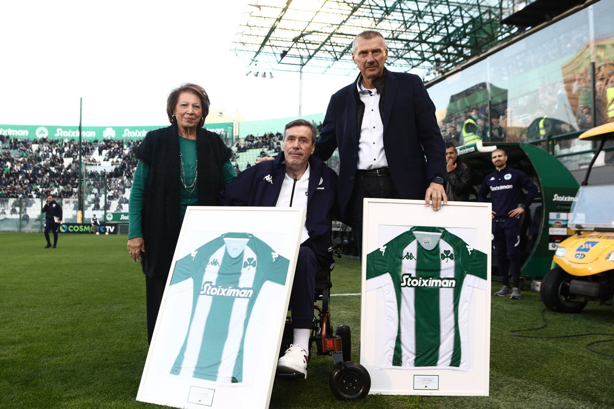 Πριν την έναρξη του αγώνα ΠαναθηναϊκόςΑτρόμητος η πράσινη ΠΑΕ τίμησε τον Σπύρο Μαραγκό για την προσφορά του στο τριφύλλι με τον παλαίμαχο άσο που αντιμετωπίζει προβλήματα υγείας τα τελευταία χρόνια να γνωρίζει την αποθέωση και τον κόσμο των πράσινων να χειροκροτά συγκινημένος.