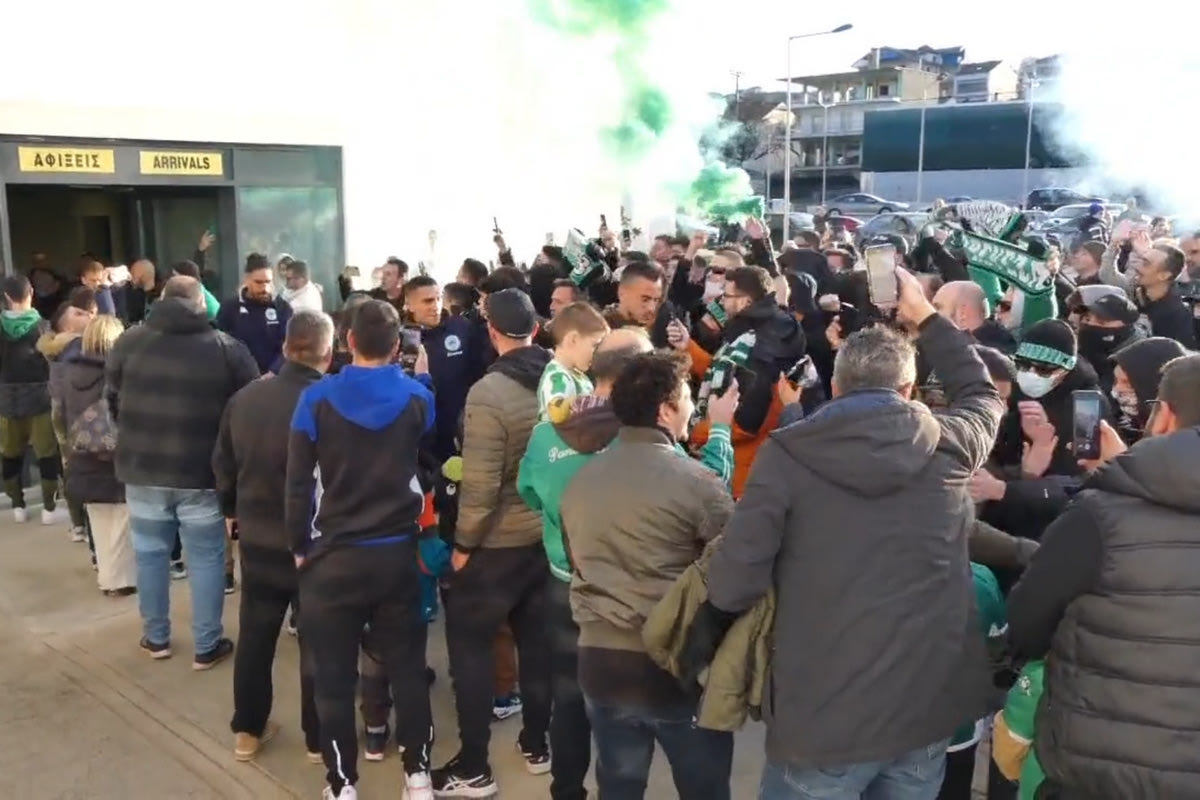Η αποστολή του Παναθηναϊκού έτυχε αποθεωτικής υποδοχής στα Ιωάννινα κατά την άφιξη της από τους φίλους του τριφυλλιού που βρέθηκαν στο αεροδρόμιο.