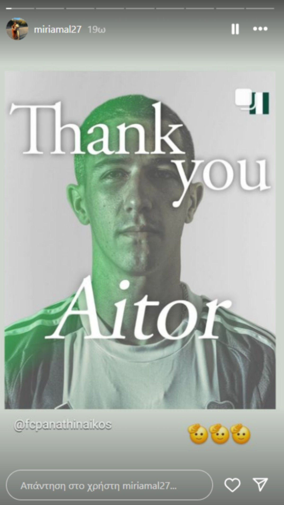 Η σύντροφος του Αϊτόρ, Μίρια, δημοσίευσε ευχαριστήρια ανάρτηση στο Instagram και αποχαιρέτησε τον Παναθηναϊκό.
