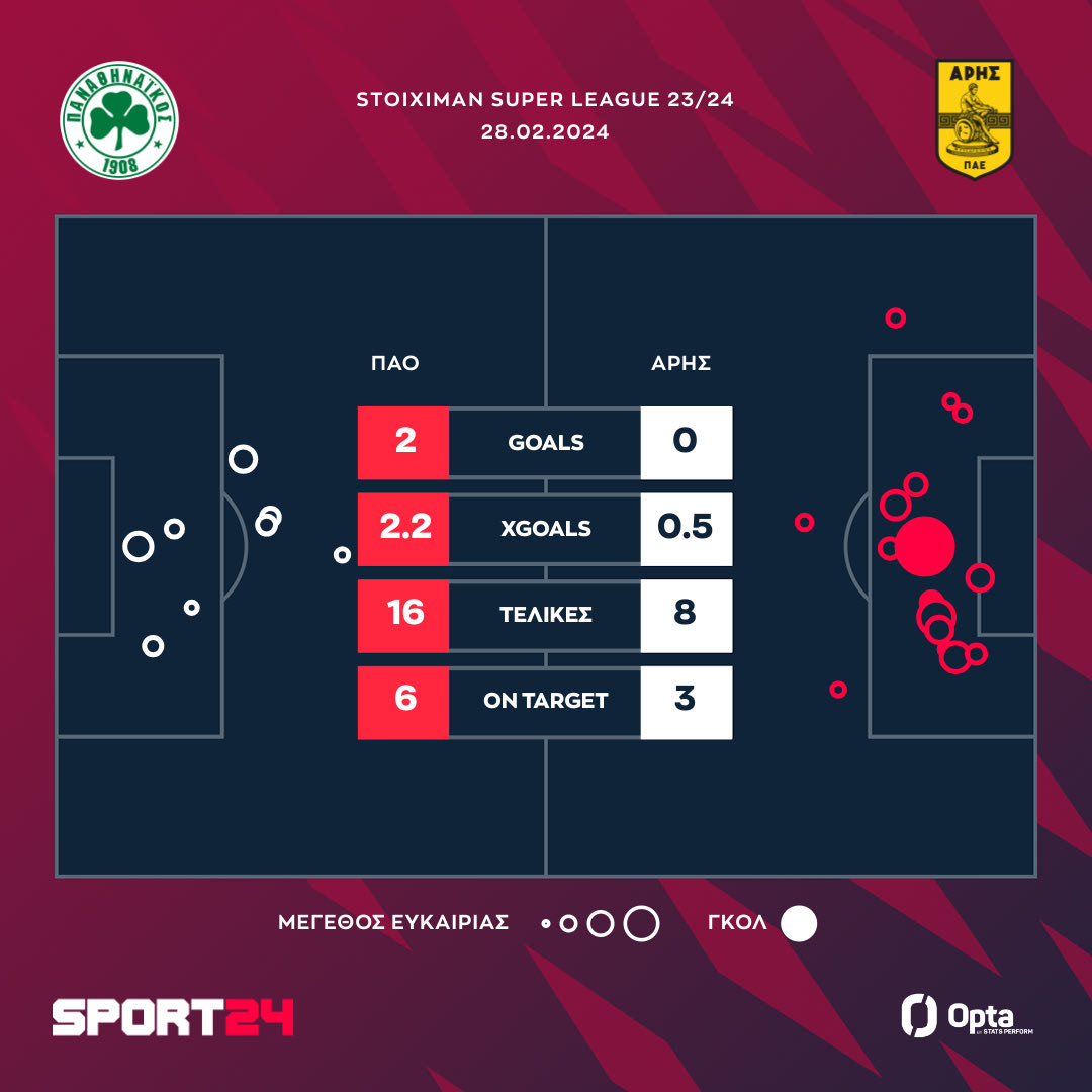 Αντίθετα ο Άρης ο οποίος είχε τις στιγμές του στη Λεωφόρο αλλά δεν μπόρεσε να σκοράρει παρέμεινε στην 5η θέση και πλέον είδε όλους τους υπόλοιπους να αυξάνουν τη διαφορά και την 4η θέση να γίνεται δύσκολη υπόθεση.