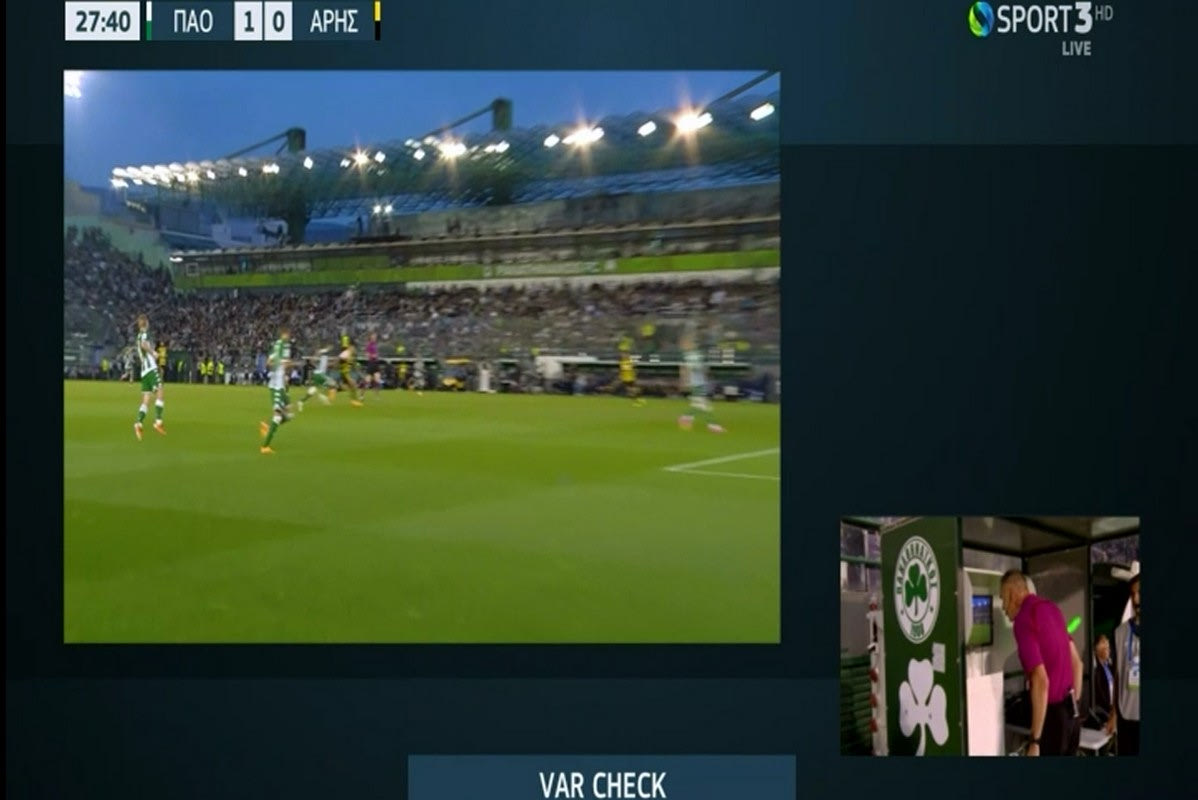 Το VAR έλεγξε τη φάση, ο κ. Τσαγκαράκης δεν μπορούσε να αποφασίσει και κάλεσε τον κ. Τζήλο να δει και ο ίδιος τη φάση.
