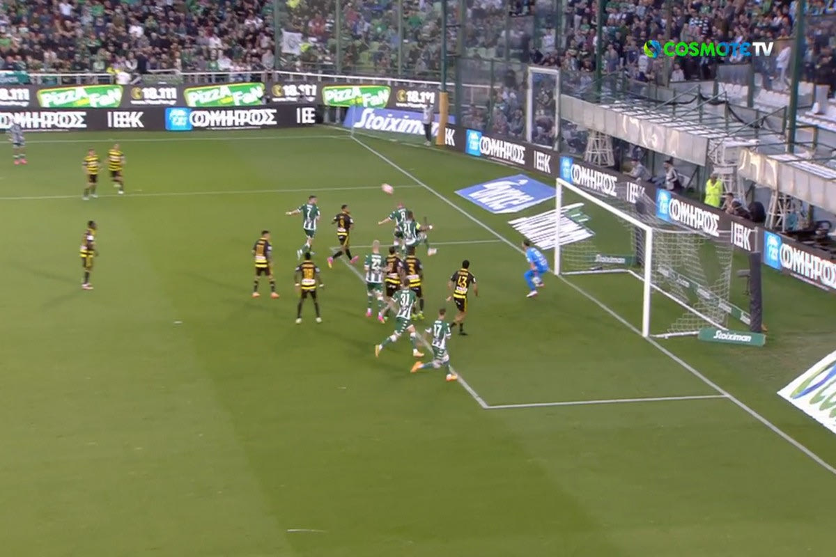 Ο Κλεϊνχέισλερ με κεφαλιά στο πρώτο δοκάρι άνοιξε το σκορ για τον Παναθηναϊκό κόντρα στον Άρη μόλις στο 6' της αναμέτρησης της Λεωφόρου.