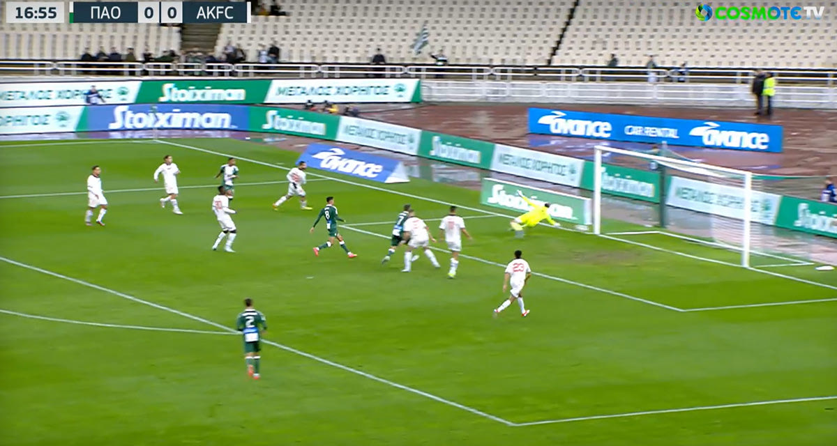Ο Τετέ σούταρε στο δοκάρι έπειτα από υπέροχη ενέργεια του Τζούριτσιτς στο πρώτο ημίχρονο του αγώνα του Παναθηναϊκού με την Athens Kallithea.