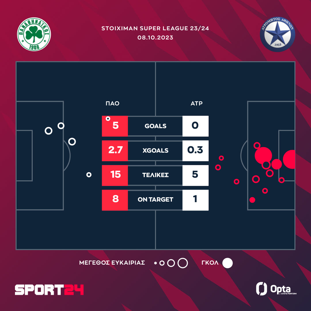 Το παιχνίδι ολοκληρώθηκε με τον Παναθηναϊκό να παίρνει μια άνετη νίκη με 5-0 και να ολοκληρώνει τα πρώτα επτά ματς του πρωταθλήματος και να βρίσκεται στη δεύτερη θέση, τρεις βαθμούς πίσω από τον Ολυμπιακό και στο +2 από την ΑΕΚ.