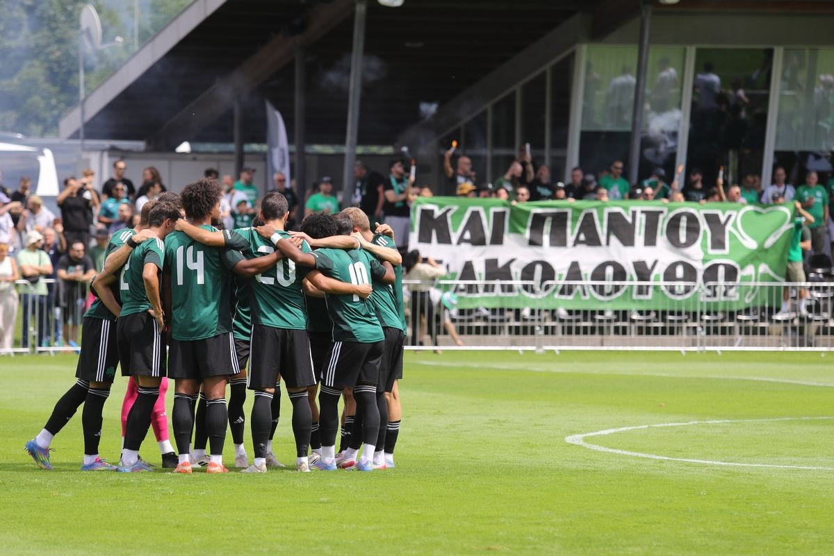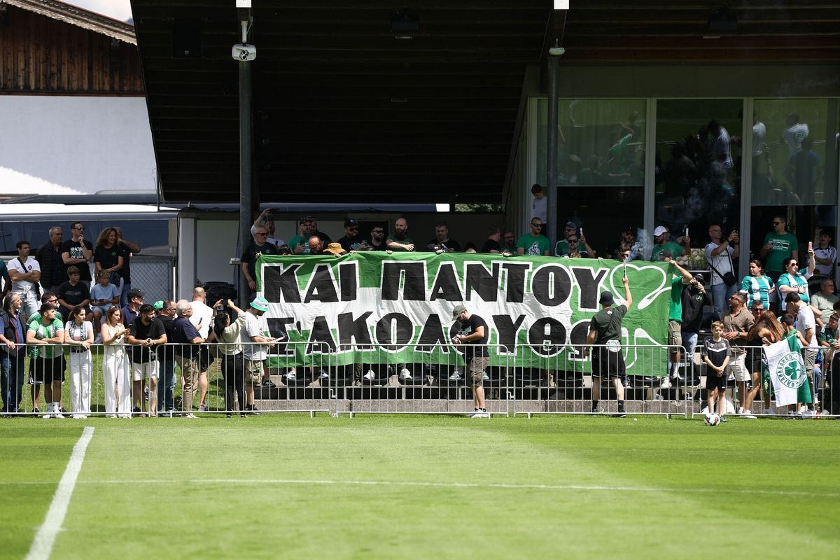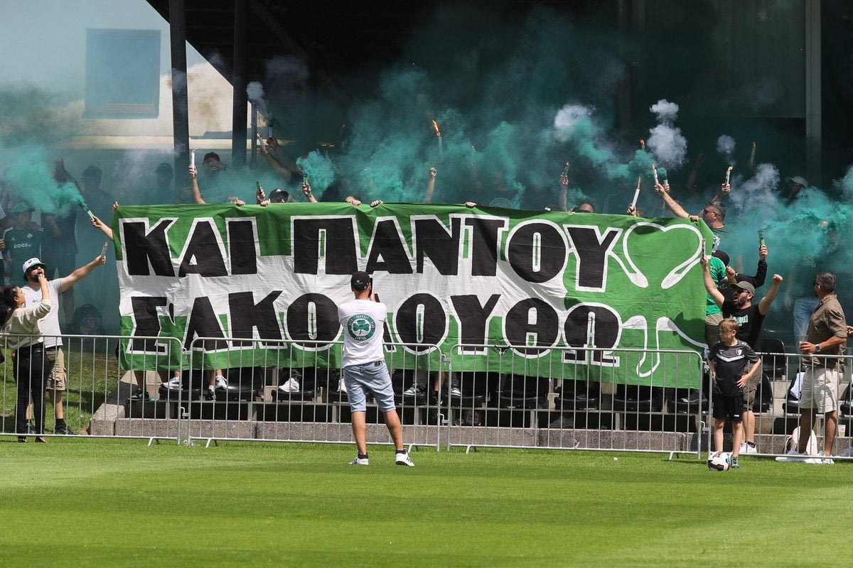 Οι φίλοι του Παναθηναϊκού που βρίσκονται στην Αυστρία για το τελευταίο φιλικό της ομάδας του κόντρα στην Μπράγκα δημιούργησαν ένα εντυπωσιακό σκηνικό με καπνογόνα και συνθήματα.