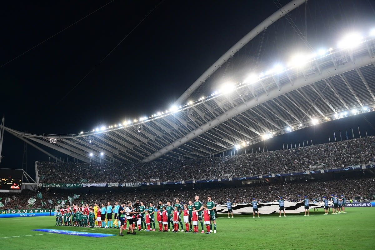 Το ΟΑΚΑ έβαλε τα καλά του και άκουσε ξανά τον ύμνο του Champions League, με τον κόσμο του Παναθηναϊκού να δημιουργεί υπέροχη ατμόσφαιρα κατά την είσοδο των παικτών στον αγωνιστικό χώρο.