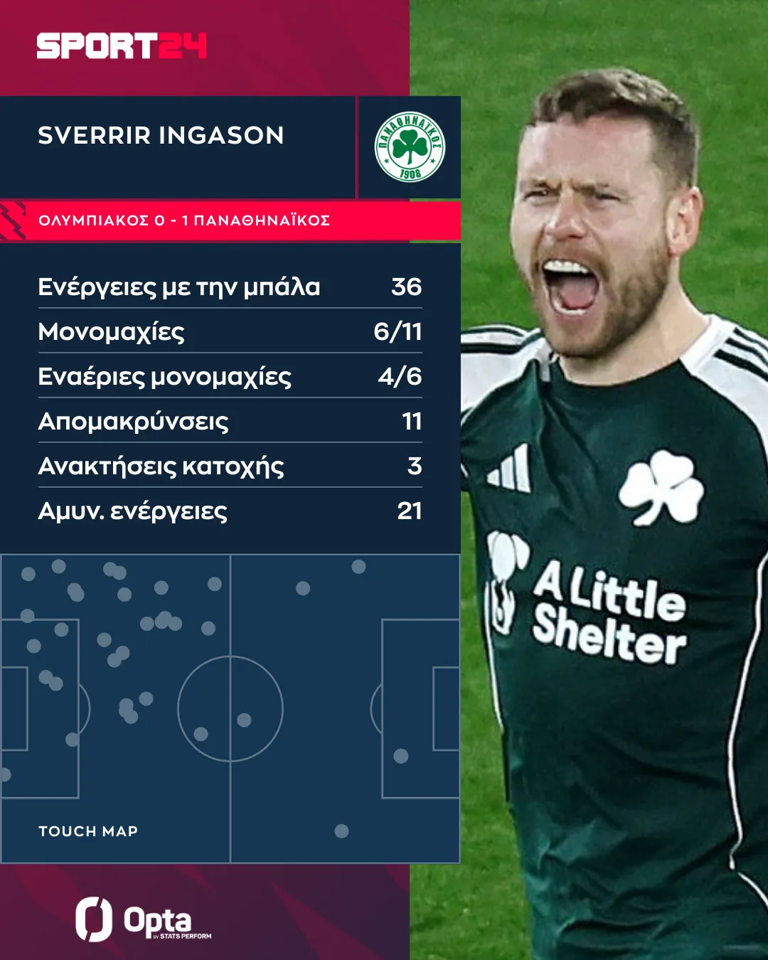 Ο Σβέριρ Ίνγκι Ίνγκασον έδωσε το σύνθημα με την ηγετική του παρουσία. Ο Ισλανδός στόπερ είχε καθοριστική παρουσία, με σωστές τοποθετήσεις και ψυχραιμία στις μπάλες ένας με έναν. Κέρδισε τις 4 από τις 6 εναέριες μονομαχίες στις οποίες ενεπλάκη, είχε 1/1 επιτυχημένο τάκλιν, ενώ κατέγραψε συνολικά 12 αμυντικές ενέργειες και 11 απομακρύνσεις.